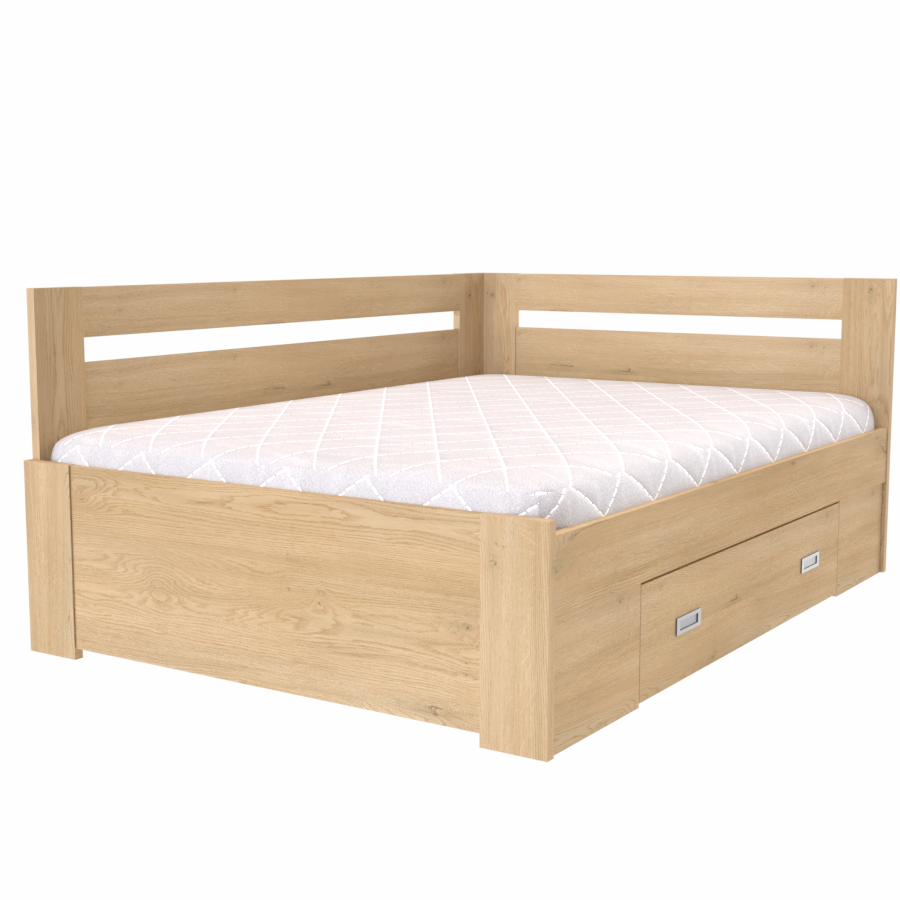 NÁBYTEK MIKULÍK s.r.o. FABIE - postel s úložným prostorem rohová 140x200cm / 120x200cm Dekor: dub sametový, Šířka pro matraci: 140cm, Úchytka: STANDARD