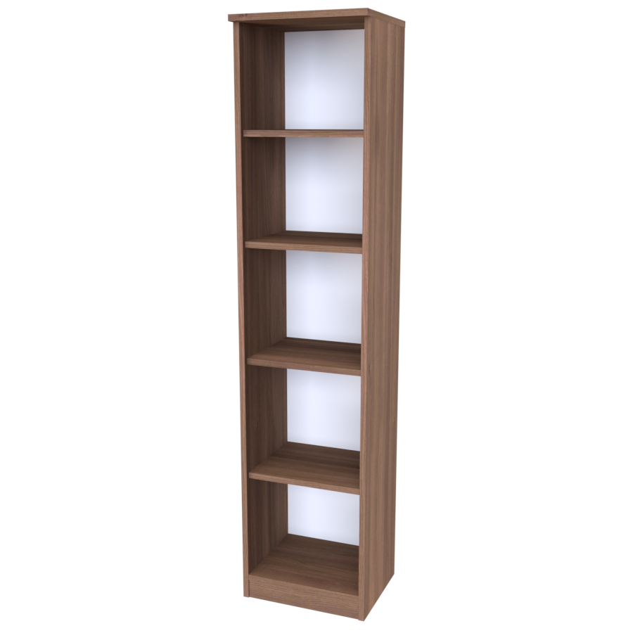 Úzká policová skříň s otevřeným prostorem. Výborný doplňkový nábytek do ložnice, pokojů, pracovny i do obývacích místností.