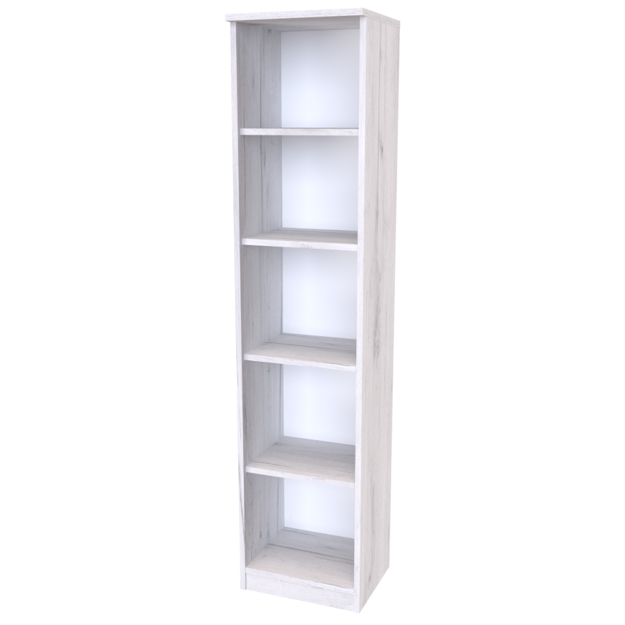 Úzká policová skříň s otevřeným prostorem. Výborný doplňkový nábytek do ložnice, pokojů, pracovny i do obývacích místností.