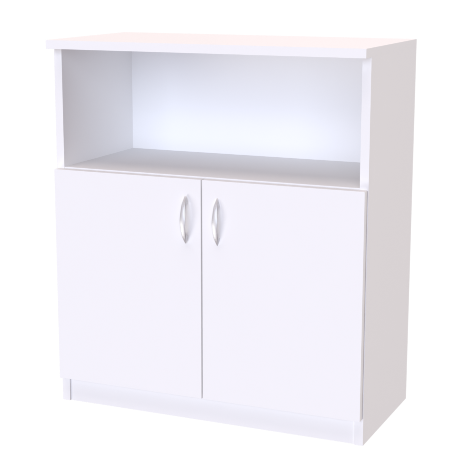 Skříňka s kombinací otevřeného prostoru a dvířek. Vhodná nejen na pracovní dokumenty. Snadno využijete i v dětském pokoji.