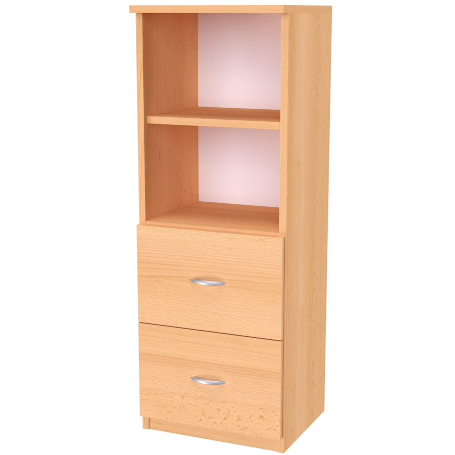 Úzká skříňka v kombinaci volného prostoru a zásuvek. Ideální výplň meziprostorů.