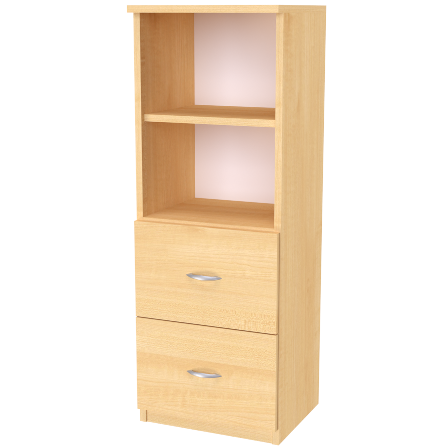 Úzká skříňka v kombinaci volného prostoru a zásuvek. Ideální výplň meziprostorů.